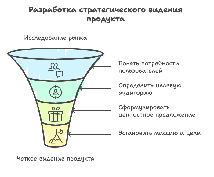 Это общее представление о том, что вы хотите создать, какую проблему решает ваш продукт и какую ценность он приносит пользователям.
